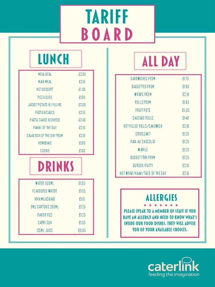 Our catering is managed by Caterlink.