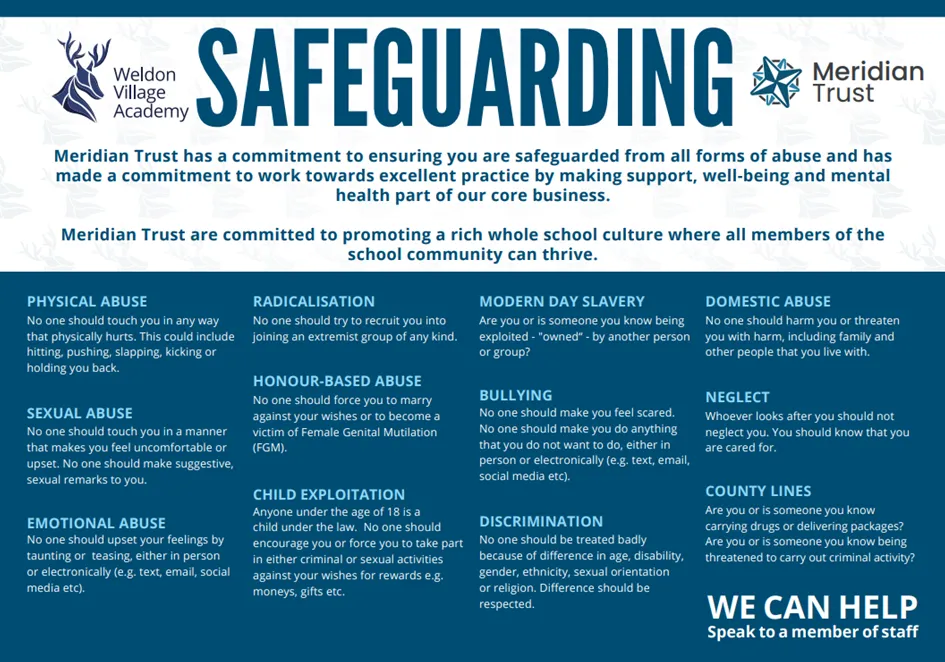 The school will therefore be alert to signs of abuse and neglect and will follow the Northamptonshire Safeguarding Children Partnership Board’s procedures to ensure that children receive appropriate and effective support and protection.